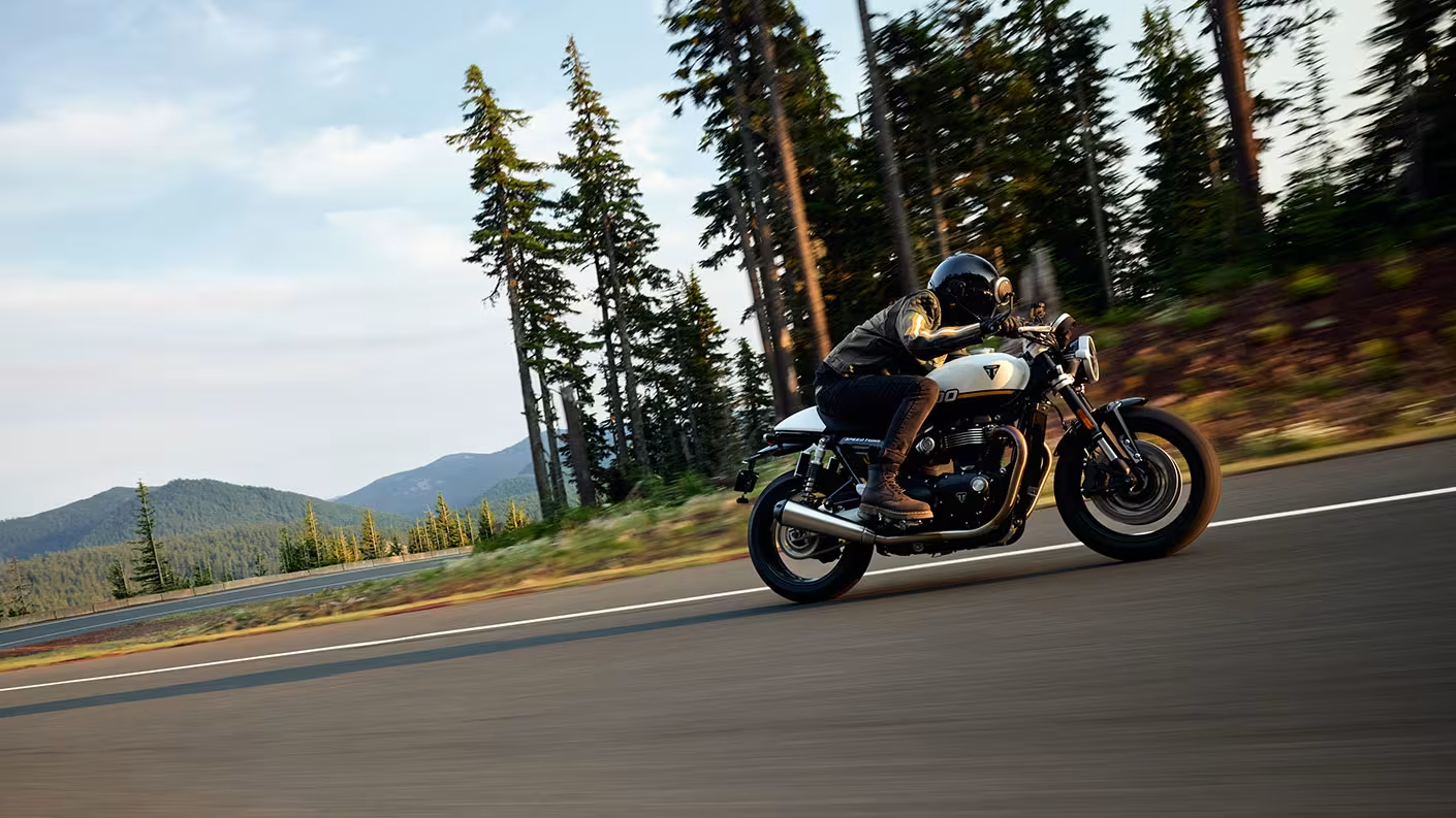 Com motor de 1.200 cc e torque abundante em baixas rotações, a Speed Twin 1200 proporciona retomadas seguras na estrada. A ergonomia equilibrada e o acabamento premium tornam a viagem confortável sem abrir mão do estilo clássico.